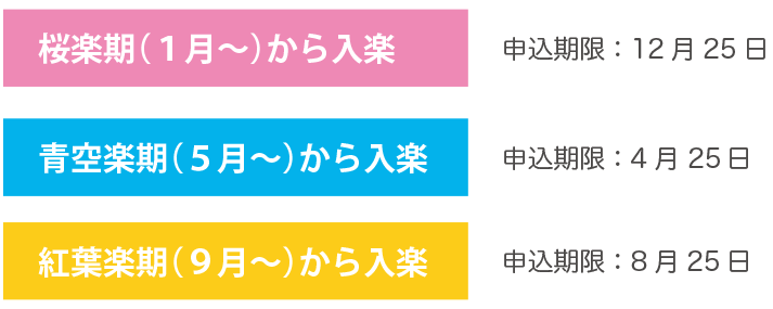 申し込み期限は、各楽期がはじまる1週間前までです。
